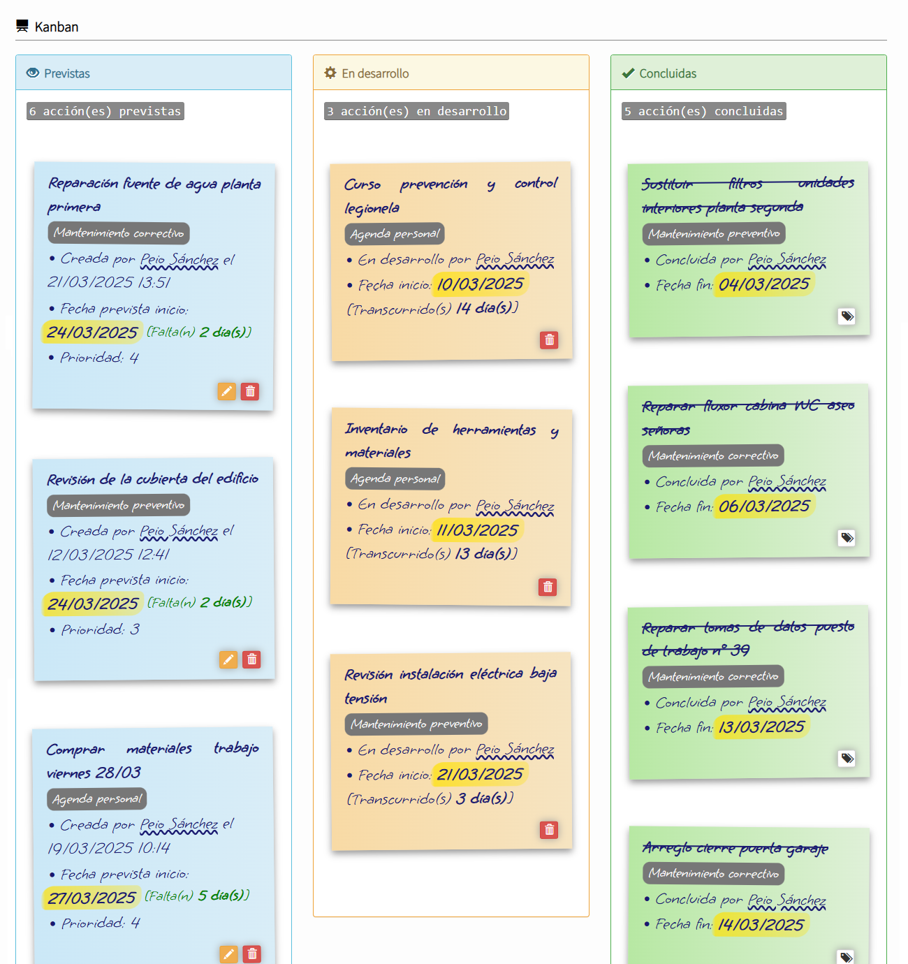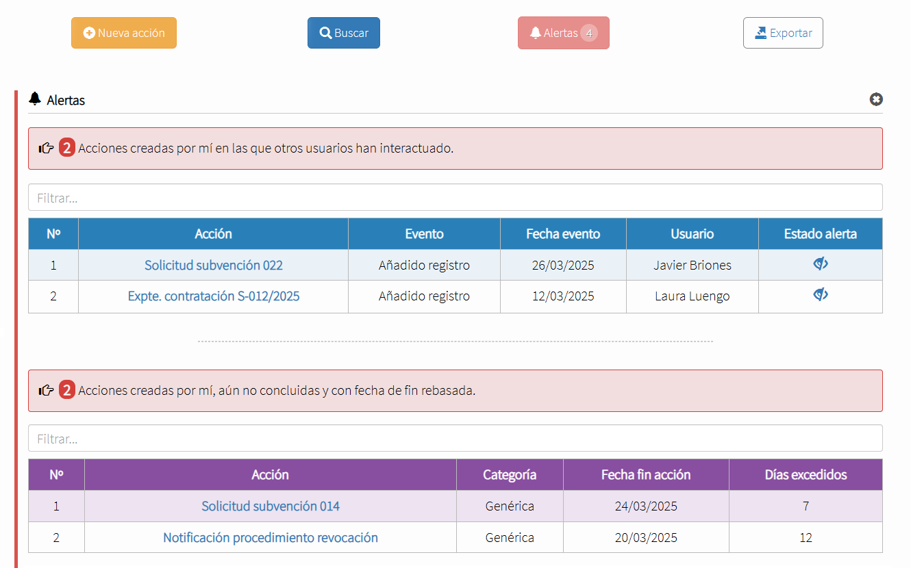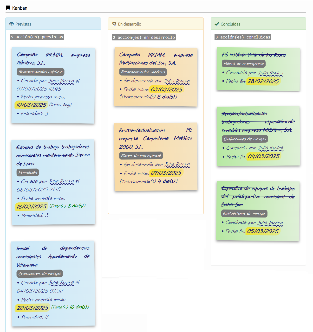 Si deben gestionarse acciones en las que lo relevante o primordial sea conocer su estado (previstas, en desarrollo o concluidas), a modo de lista to do, lo más indicado será hacer uso del módulo Kanban.