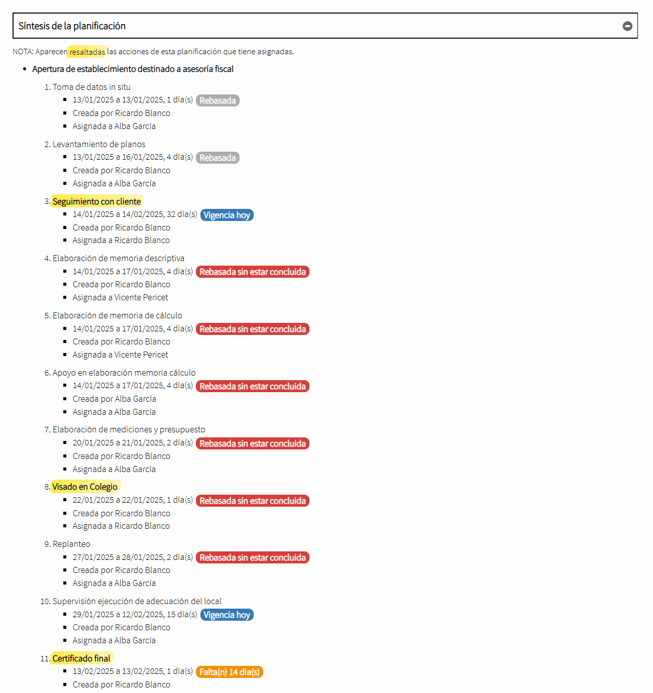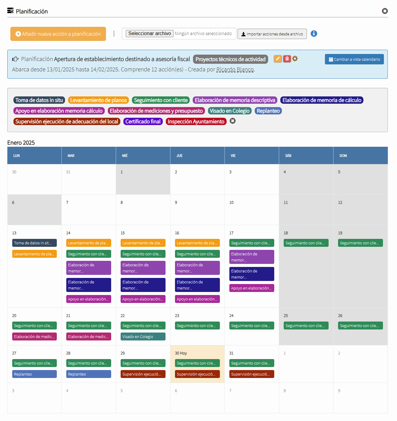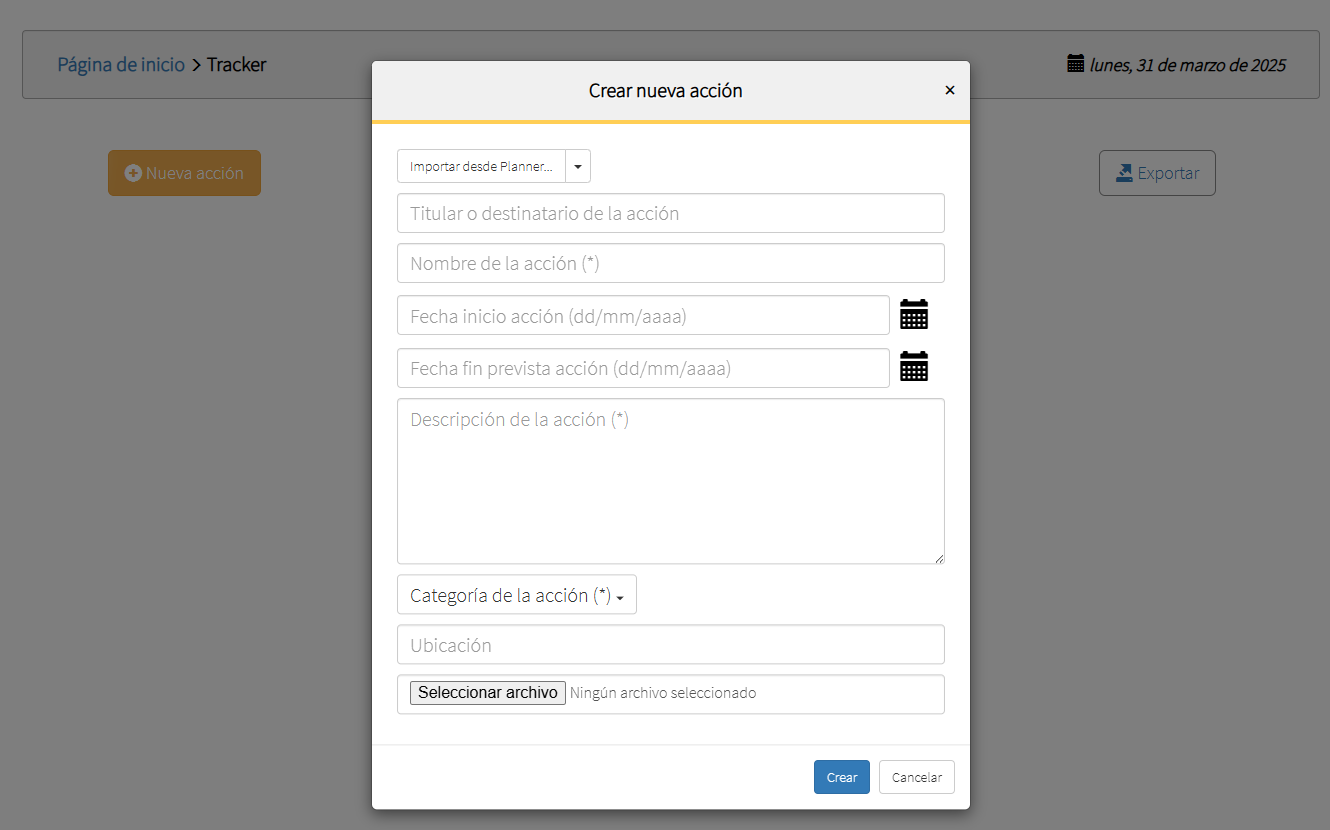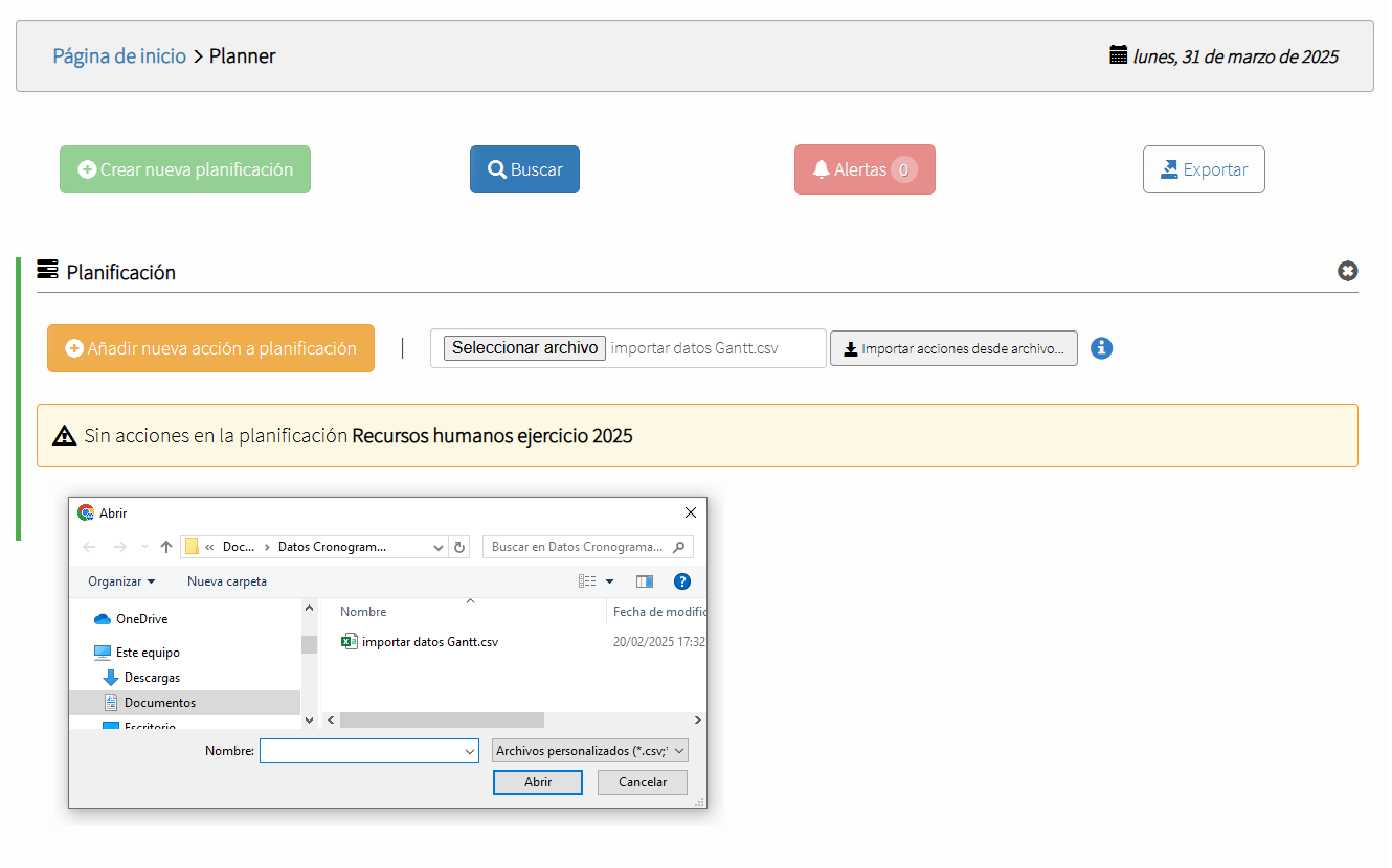 Por supuesto, también cabe un uso combinado de los distintos módulos. Por ejemplo, pueden planificarse acciones mediante un diagrama Gantt generado con el módulo Planner y, puesto que éste permite su asignación a distintos usuarios/empleados, cada uno de ellos podrá hacer un seguimiento personal de tales acciones con el módulo Kanban. A este respecto, cabe aclarar que es posible importar, tanto desde el módulo Kanban, como desde el módulo Tracker, acciones ya creadas en el módulo Planner.